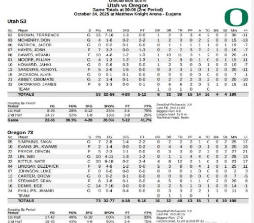 林葳在上半场传球为主,下半场开启进攻模式得分上双,也是率领俄勒冈大学73-53大胜犹他大学收获胜利。