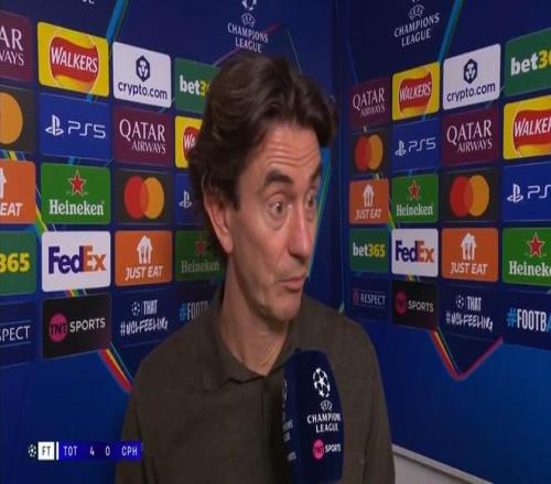 率队在欧冠联赛阶段第4轮主场4-0大胜哥本哈根之后,托特纳姆热刺主教练托马斯-弗兰克接受了来自TNT体育的采访。