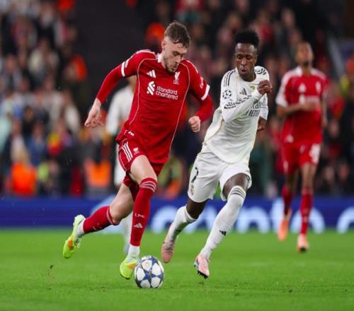第61分钟,贝林厄姆的犯规送给利物浦任意球,索博斯洛伊的传球落点精准,麦卡利斯特抢到前点,终于攻破了库尔图瓦的十指关。