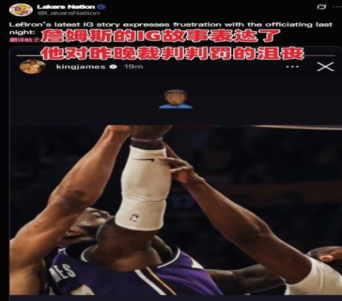 詹皇在赛后竟然开始抱怨裁判的判罚了,而且还主动晒这种图片,说实话,不管什么样的球星都没干出过这种事来。今年遭遇过误判的可不只是他一个人,库里杜兰特包括哈登文班亚马,都遭遇过误判,没有一个人在赛后跑到社交媒体上晒图,这就太输不起了。