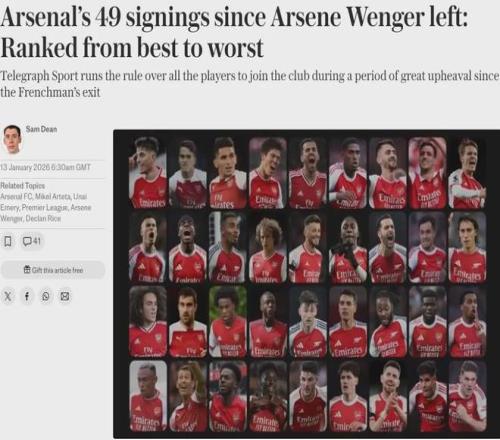 电讯报统计,自温格2018年夏天告别之后,阿森纳已经在转会市场上花费了10亿英镑以上,总共签下了49名球员。