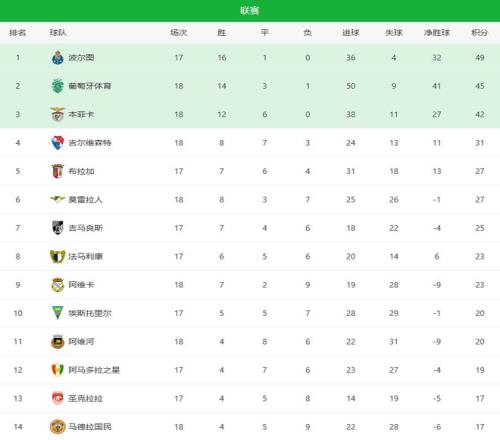 穆里尼奥终于赢了!在葡超第18轮,本菲卡客场挑战里奥阿维(阿维河),最终凭借上半场的两粒进球,2-0干净利落带走三分,止住了2连败颓势(葡联杯和葡萄牙杯),联赛18场不败积42分,排在葡超积分榜第三;在先赛一场情况下,落后领头羊波尔图7分之巨,比第二名的葡萄牙体育少3分,联赛争冠基本没戏,不过拿下联赛第二,斩获下赛季欧冠资格相信问题还是不大!