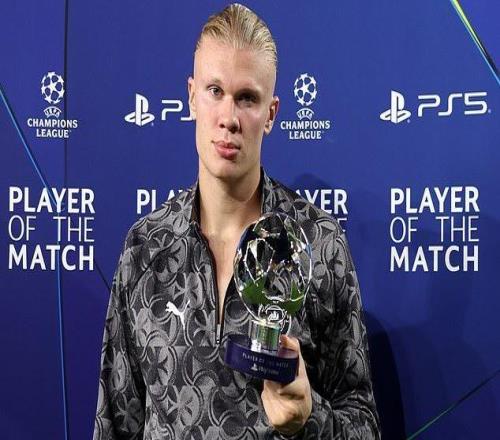 没赢球不开心,哈兰德领取全场最佳球员奖时笑不出来
